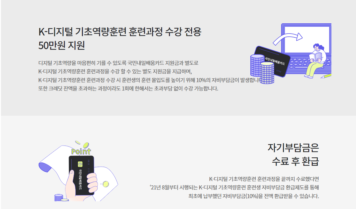 내일 배움 카드 지원금과 별도로 K- 디지털 훈련과정만을 위한