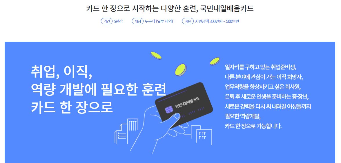 내일 배움 카드는 취업과 이직, 자기 계발 등의 능력을 향상하기 위해