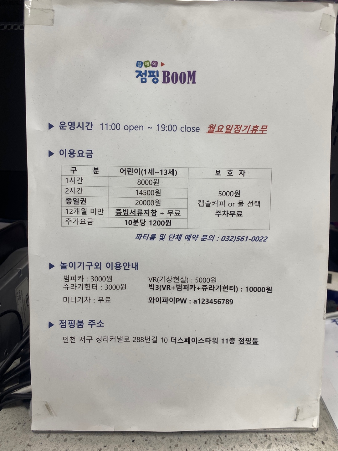 청라에 있는 점핑붐인데요.