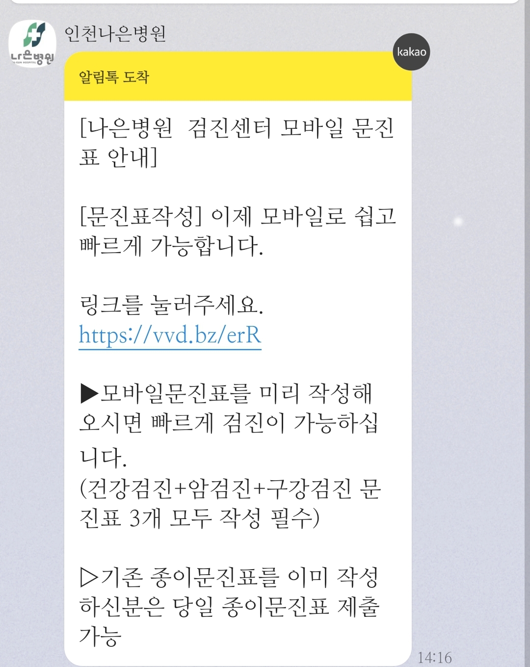 카카오톡으로 검진결과 링크가 날아옵니다.