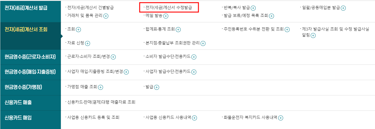 전자계산서 발급란에 수정발급을 찾아 들어가면