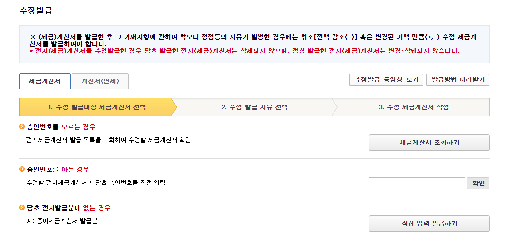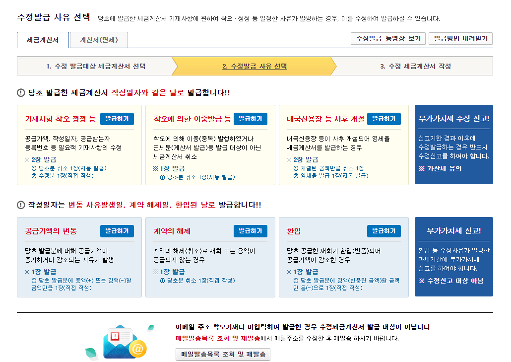 세금계산서 기재사항 착오 정정 방법