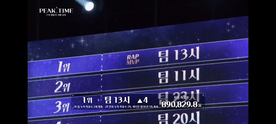 13시 팀에서 제이민이 랩 MVP가 되면서